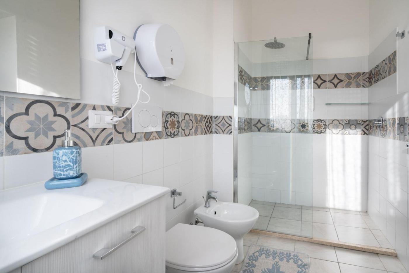 Camera Quadrupla con Vista Mare. Offering free toiletries, this quadruple room includes a private bathroom with a shower, a bidet and a hairdryer. The air-conditioned quadruple room offers a flat-screen TV, a tea and coffee maker, a wardrobe, a sofa as well as sea views. The unit has 1 bed and 2 futons.
