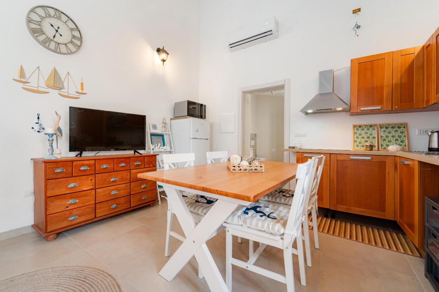 Questa casa vacanze con aria condizionata comprende 1 camera da letto, un soggiorno, una cucina con utensili, forno e macchina da caffè, e 1 bagno con doccia edi cortesia. Presso questa casa vacanze troverete asciugamani e lenzuola in dotazione.