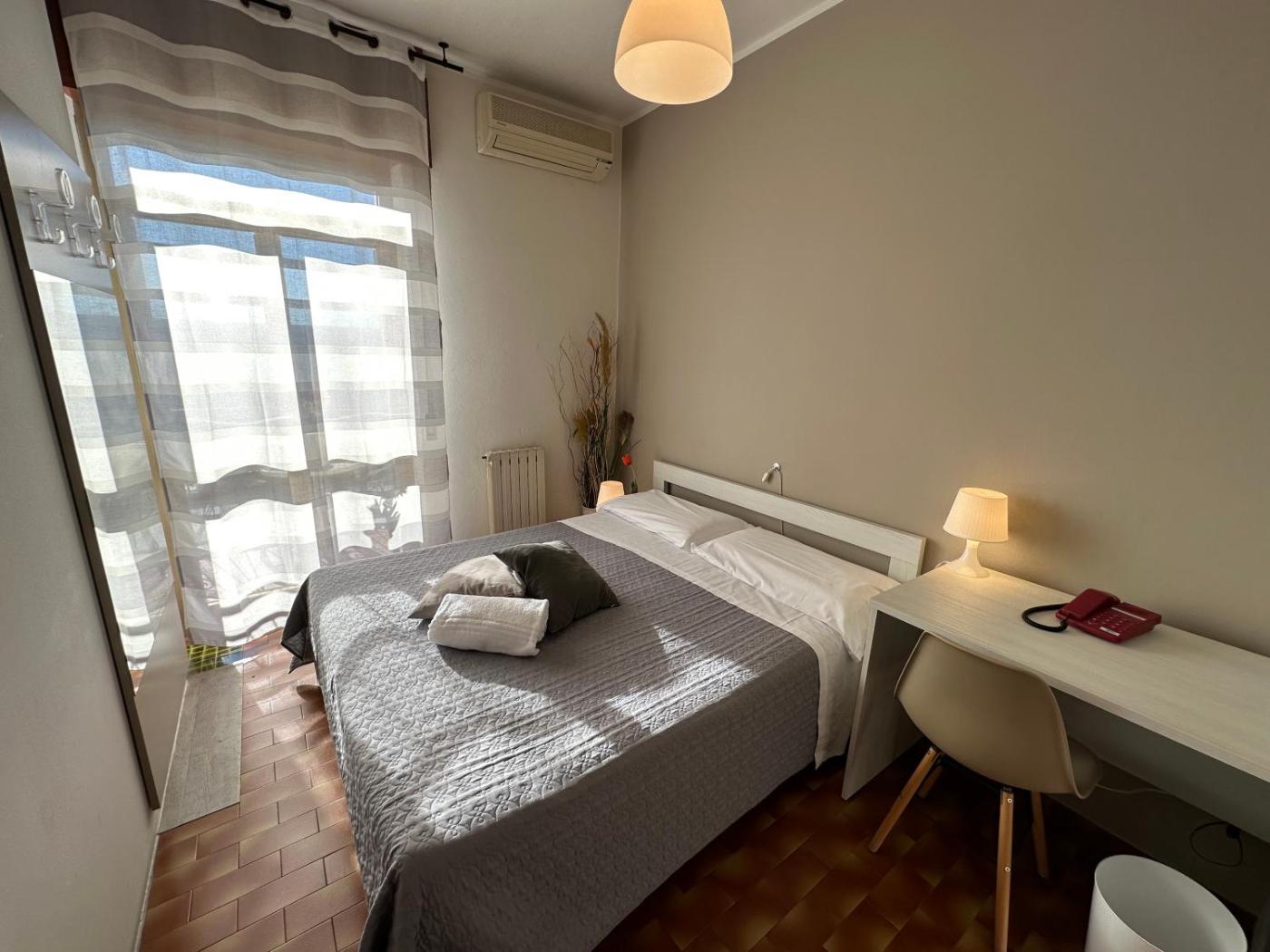 Camera Matrimoniale Economy. Camera matrimoniale dotata di un bagno privato con doccia, bidet, asciugacapelli edi cortesia. Questa camera matrimoniale include aria condizionata, TV a schermo piatto, armadio, pavimento piastrellato, riscaldamento e vista sul cortile interno. Lalloggio dispone di 1 letto. ;