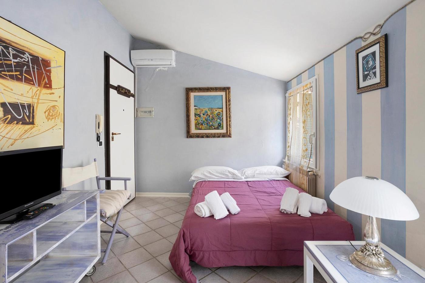 Questo appartamento con aria condizionata comprende 1 camera da letto, un soggiorno, una cucina con utensili, forno e macchina da caffè, e 1 bagno con doccia edi cortesia. Presso questo appartamento troverete asciugamani e lenzuola a disposizione.