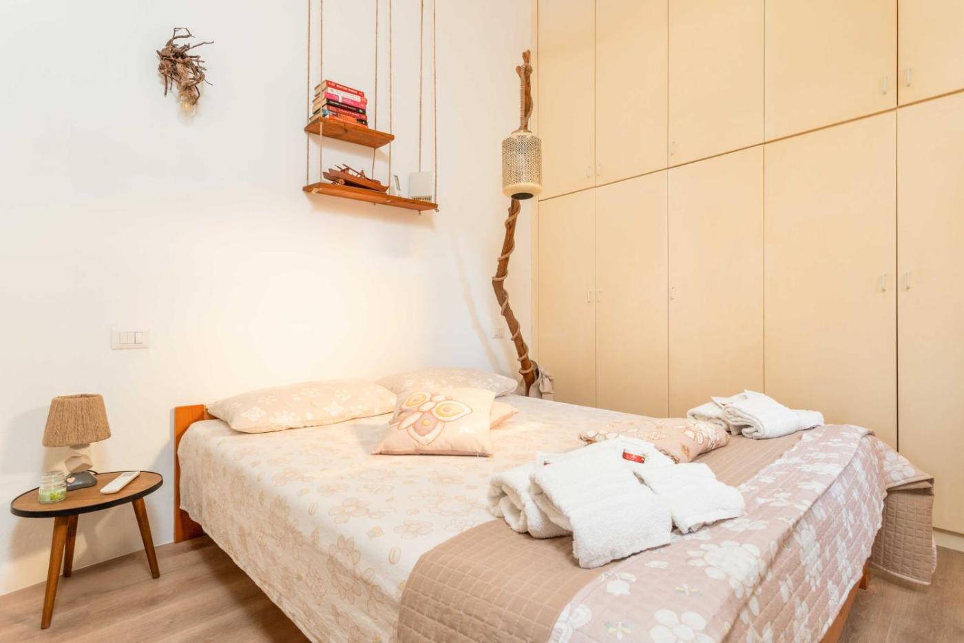Questo appartamento con 1 camera da letto e aria condizionata presenta 1 bagno con bidet, doccia edi cortesia. La cucina comprende frigorifero, forno e piano cottura più macchina da caffè.