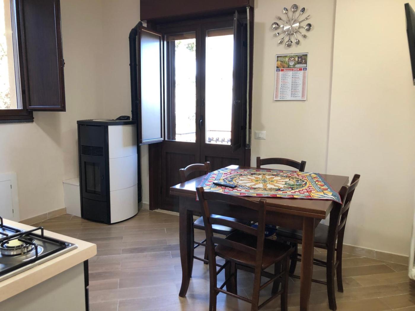 Questa casa vacanze ha 2 camere da letto, 1 bagno, lenzuola, asciugamani, una TV a schermo piatto con canali satellitari, una zona pranzo, una cucina con utensili e una terrazza con vista sulla montagna.