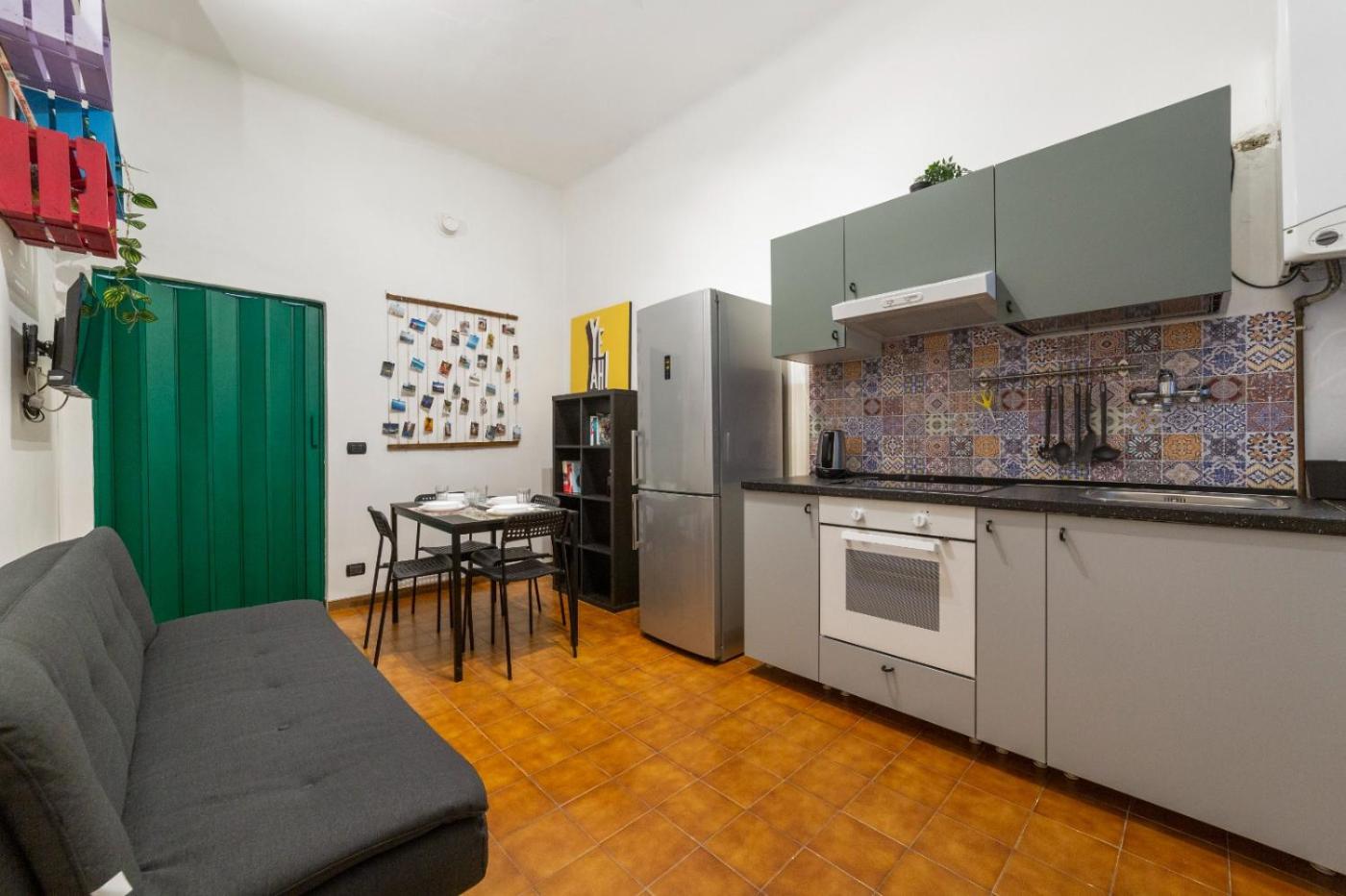 Appartamento con 1 Camera da Letto. This air-conditioned apartment comprises 1 living room, 1 separate bedroom and 1 bathroom with a shower. Meals can be prepared in the kitchenette, which comes with a stovetop, a refrigerator, kitchenware and an oven. The apartment provides a washing machine, a seating area, a wardrobe, an electric kettle and a TV. The unit offers 2 beds.