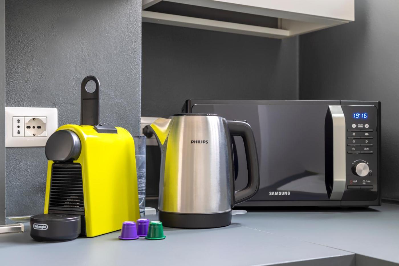 Appartamento con 1 Camera da Letto. Questo appartamento include 1 soggiorno, 1 camera da letto separata e 1 bagno con doccia edi cortesia. La cucina ben attrezzata in loco è munita di piano cottura, frigorifero, lavastoviglie e utensili. La sistemazione è dotata di aria condizionata, vista su una strada tranquilla, lavatrice,per la preparazione di tè e caffè, area salotto e TV a schermo piatto con servizi di streaming. L’alloggio presenta 2 letti.