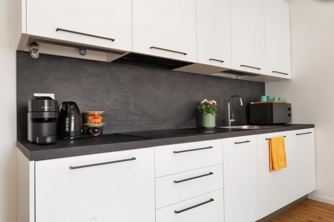 Questo appartamento con aria condizionata comprende 1 camera da letto, un soggiorno, una cucina con utensili, frigorifero e macchina da caffè, e 1 bagno con bidet e doccia. Presso questo appartamento troverete asciugamani e lenzuola tra i servizi offerti.