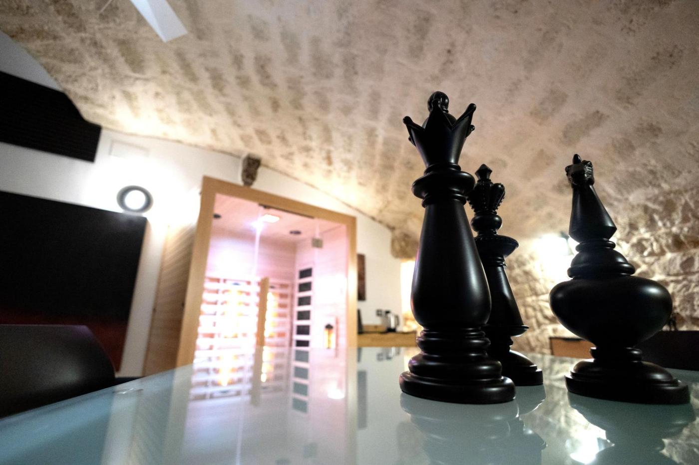 Questo appartamento offre una vasta gamma di servizi per il benessere, tra cui una piscina coperta, una sauna e una vasca idromassaggio.