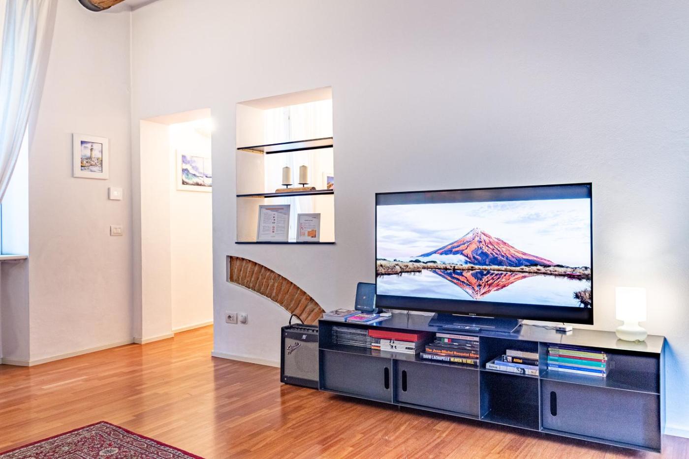 Appartamento con 2 Camere da Letto. The spacious apartment has 2 bedrooms and 2 bathrooms with a bath and free toiletries. The fully equipped kitchen features a stovetop, a refrigerator, a dishwasher and kitchenware. The air-conditioned apartment features a TV with cable channels, a washing machine, a tea and coffee maker, a wardrobe as well as city views. The unit has 2 beds.