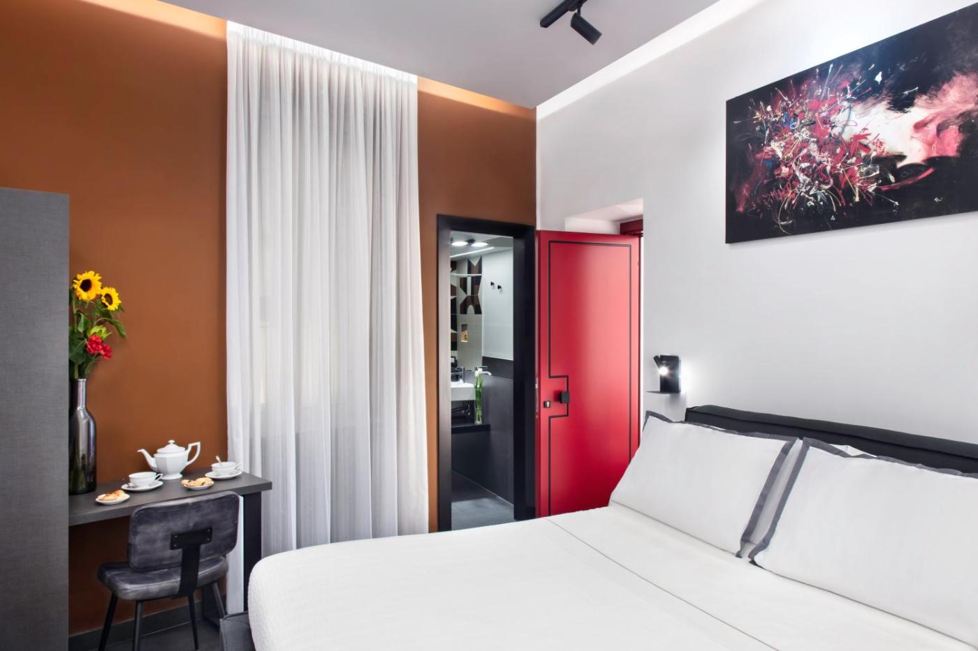 Camera Matrimoniale Deluxe. This double room has a private entrance, bathrobe and teacoffee maker and a window with a view ofthe palace