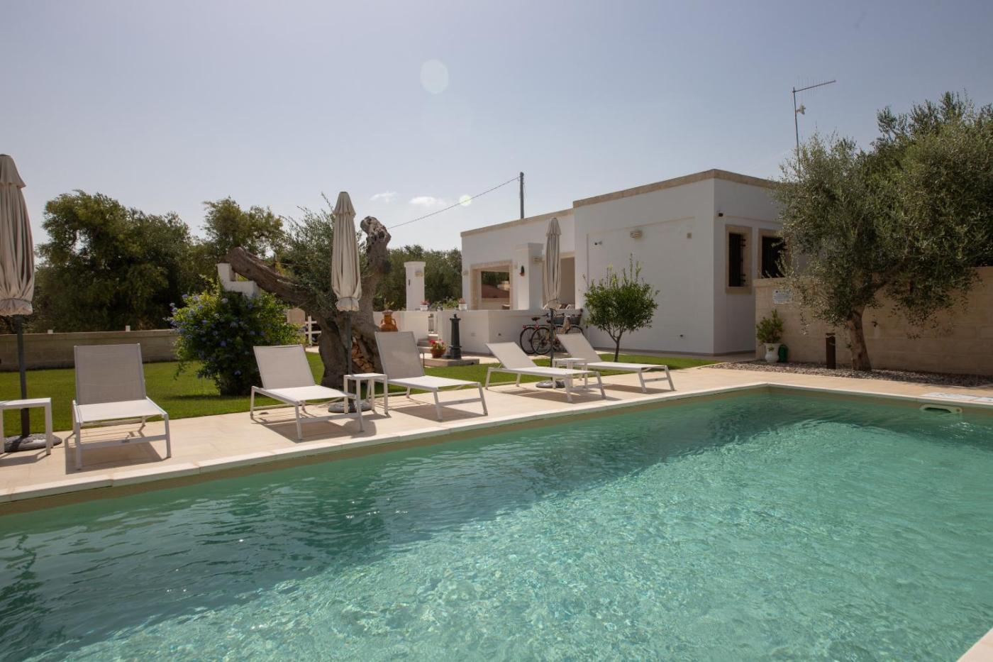 Villa con Piscina Privata. Guests will have a special experience as this villa provides a private pool. This villa is comprised of 1 living room, 3 separate bedrooms and 3 bathrooms with a shower and free toiletries. Guests will find a refrigerator, a dishwasher, kitchenware and a microwave in the kitchen. The villa also has a barbecue. The air-conditioned villa offers a flat-screen TV, a minibar, a tea and coffee maker, a wardrobe as well as garden views. The unit offers 4 beds. ;