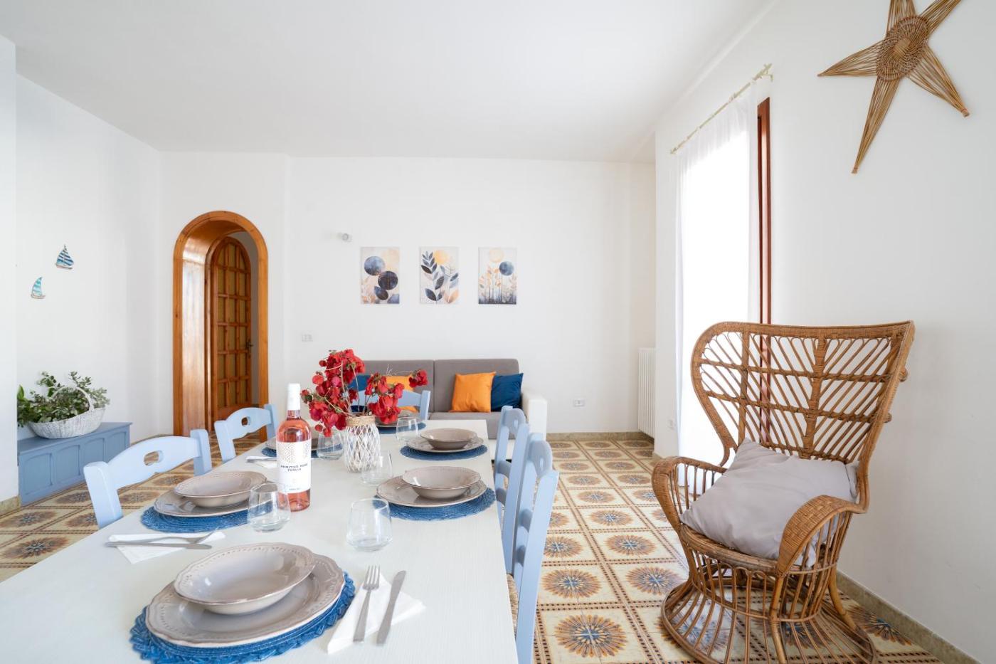 Casa con 2 Camere da Letto. Boasting a private entrance, this air-conditioned holiday home comes with 1 living room, 2 separate bedrooms and 1 bathroom with a bath and a shower. The fully equipped kitchen has a stovetop, a refrigerator, kitchenware and an oven. The spacious holiday home features a washing machine, a coffee machine, a seating area, a flat-screen TV, as well as sea views. The unit has 3 beds.
