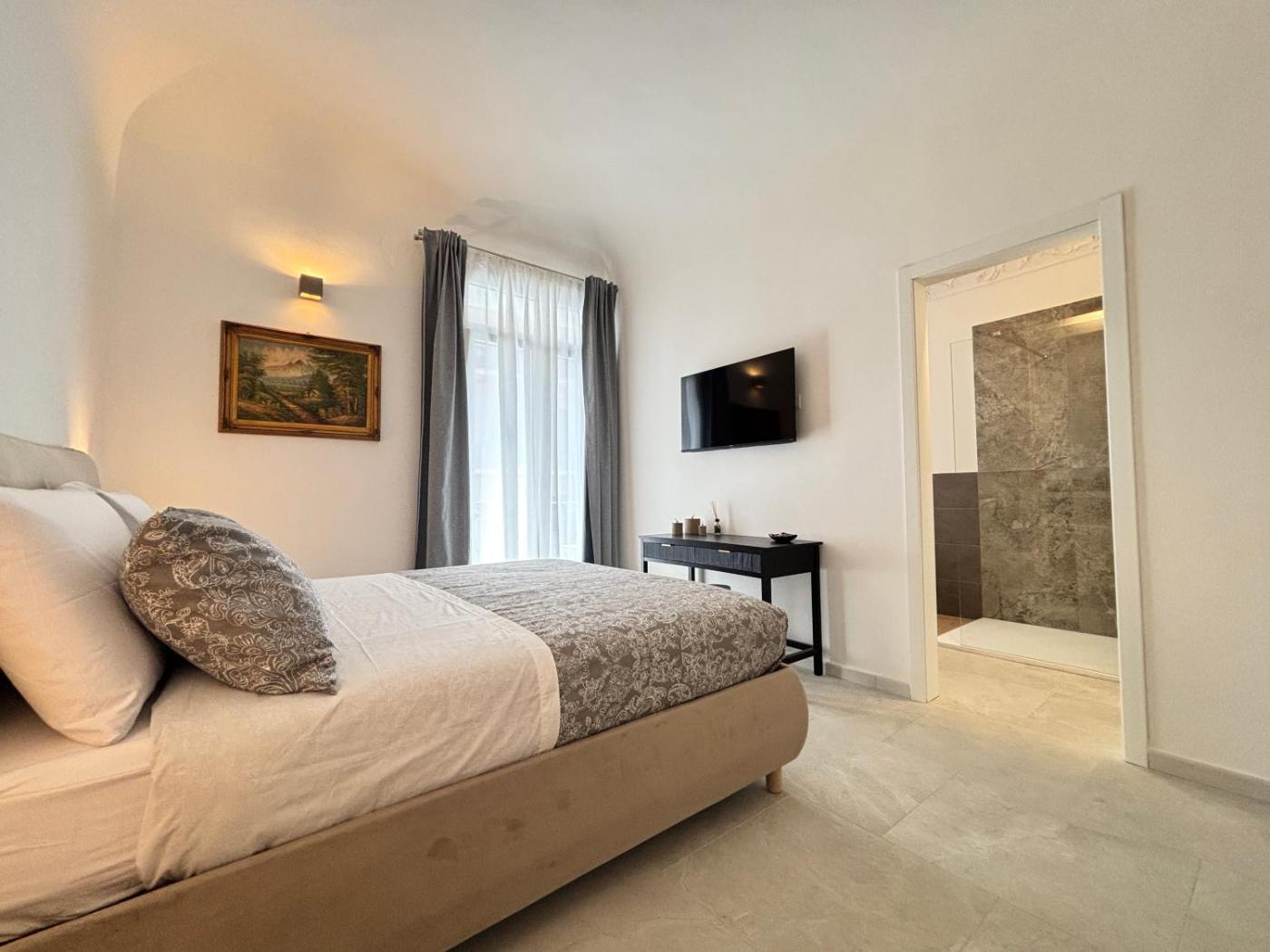 Camera Matrimoniale con Bagno Privato. Camera matrimoniale climatizzata dotata di TV a schermo piatto con servizi di streaming, bagno privato e balcone con vista sulla città . L’alloggio dispone di 1 letto. ;