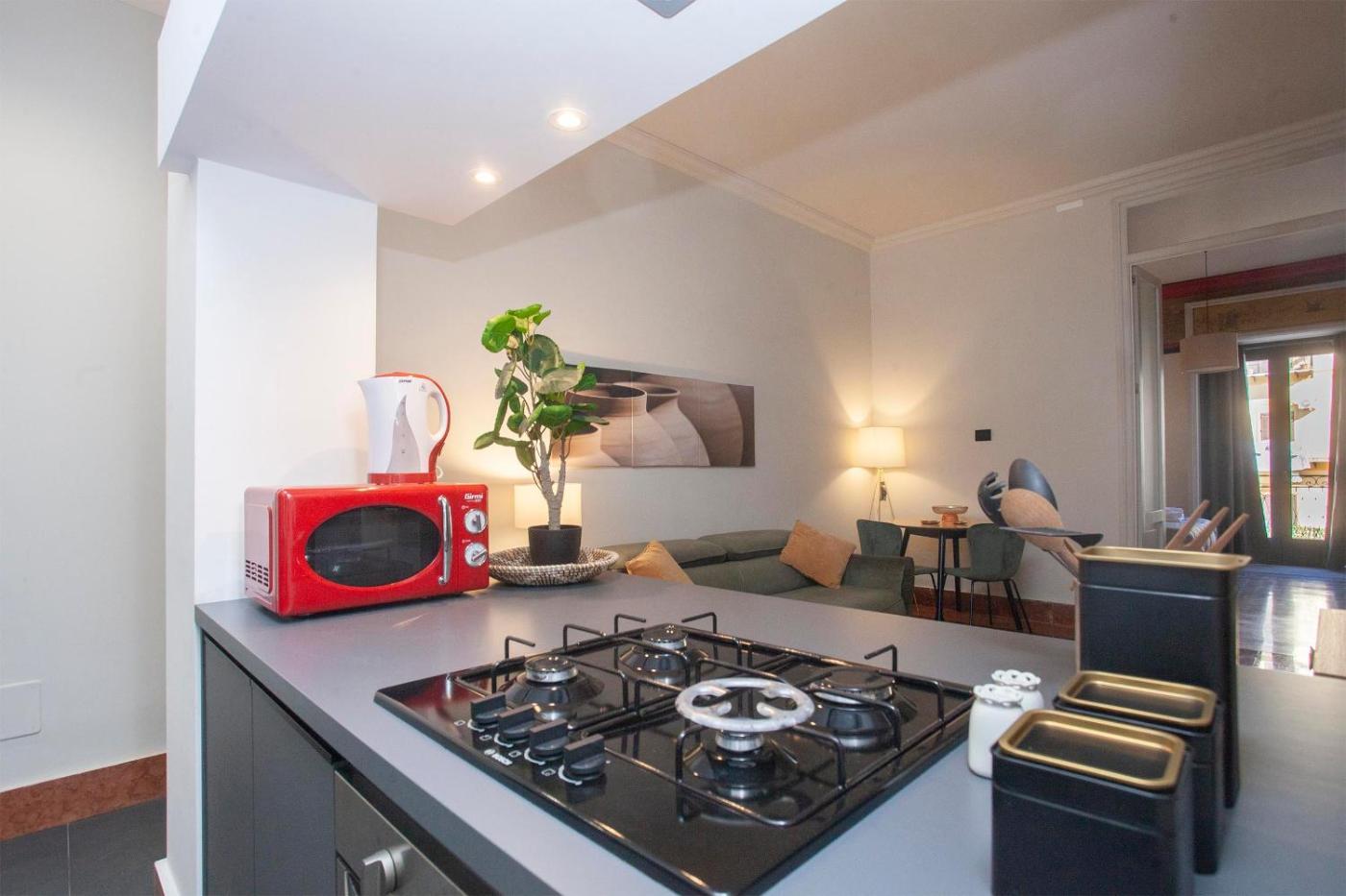 Appartamento con 1 Camera da Letto. This apartment comes with 2 living rooms, 1 separate bedroom and 1 bathroom with a shower and free toiletries. In the well-equipped kitchen, guests will find a stovetop, a refrigerator, kitchenware and an oven. The air-conditioned apartment features a flat-screen TV, a coffee machine, a seating area, a dining area as well as city views. The unit has 2 beds.