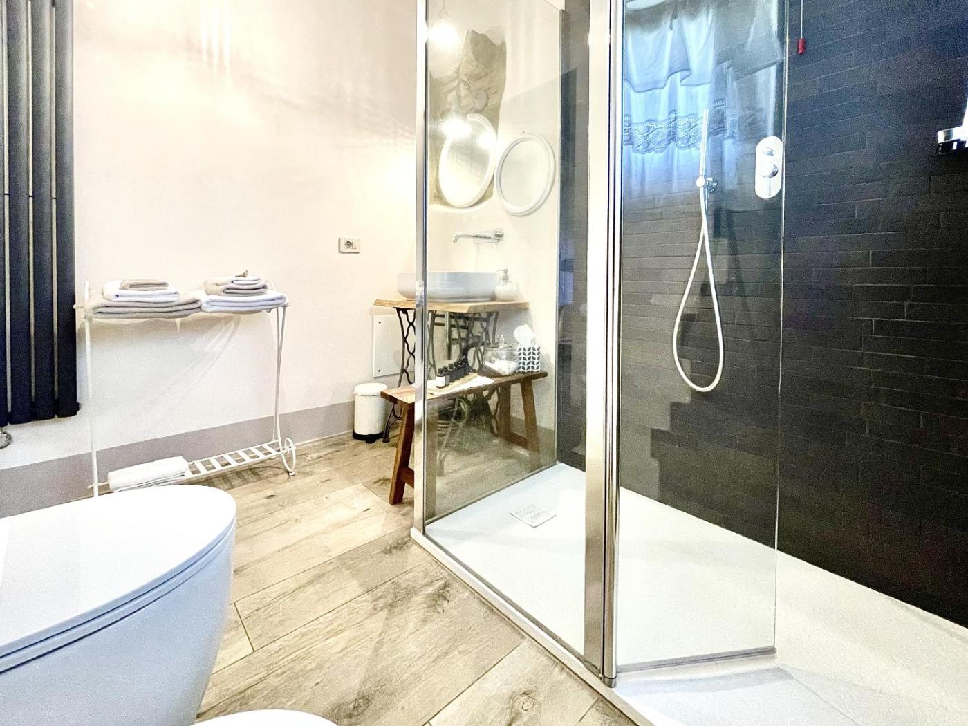 Camera Matrimoniale con Bagno Privato. The double room features air conditioning, a minibar, as well as a private bathroom boasting a walk-in shower and a hairdryer. This double room has a tea and coffee maker, a seating area, a flat-screen TV and a patio. The unit has 1 bed. ;