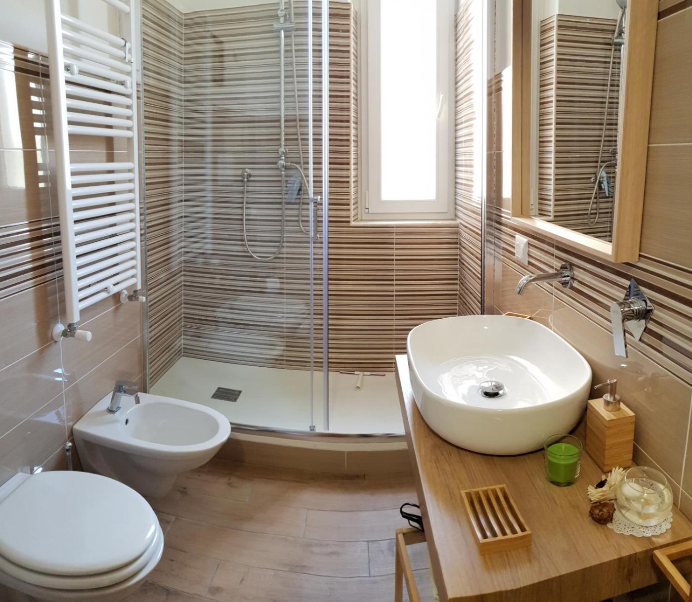 Camera Matrimoniale con Bagno Privato Esterno. Offering free toiletries, this double room includes a private bathroom with a walk-in shower, a bidet and a hairdryer. The air-conditioned double room offers a flat-screen TV, a private entrance, a tea and coffee maker, a dining area as well as city views. The unit offers 1 bed. ;