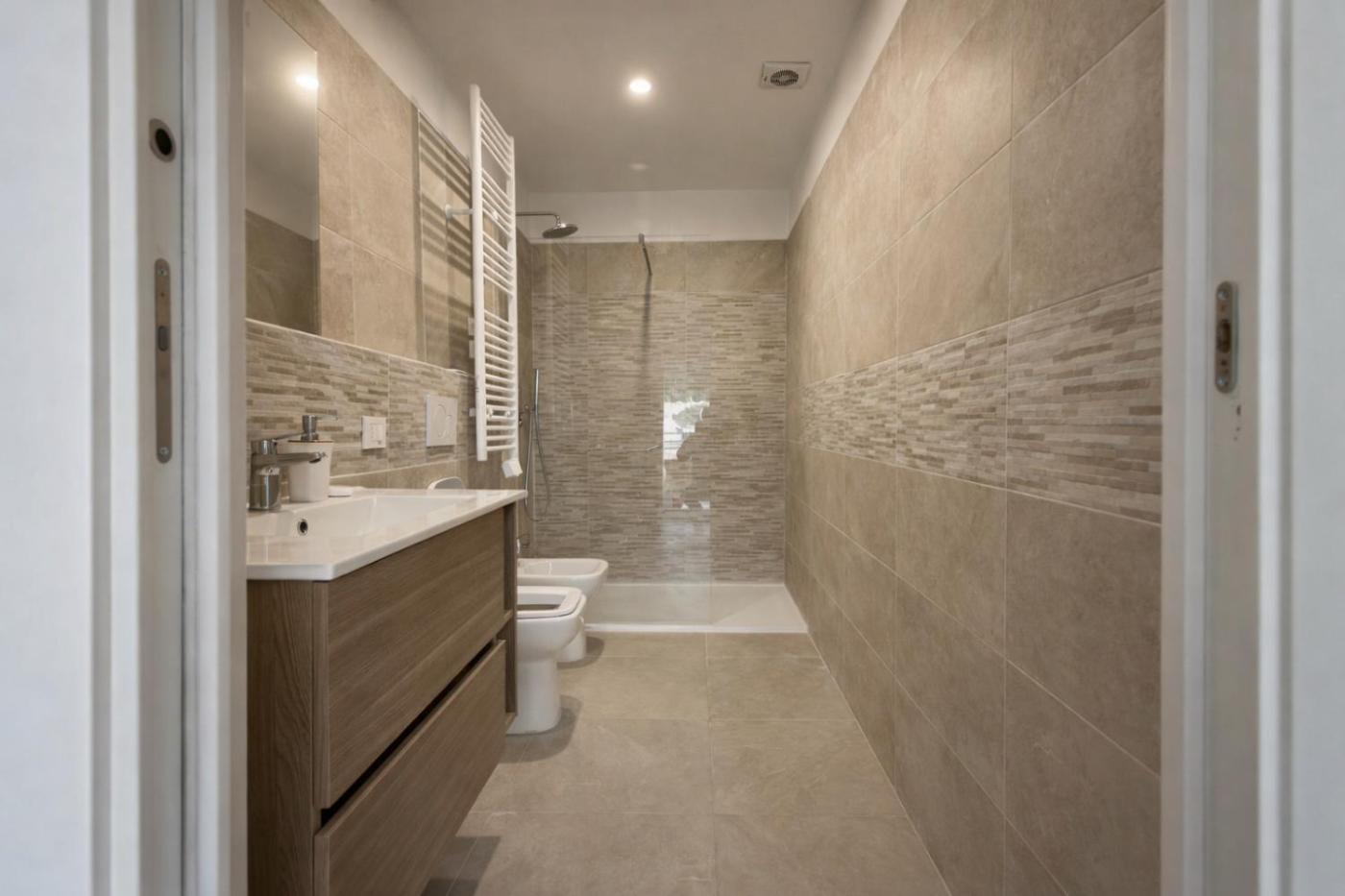 Appartamento con 1 Camera da Letto. This spacious apartment is comprised of 1 living room, 1 separate bedroom and 1 bathroom with a shower and free toiletries. Guests can make meals in the kitchen that is fitted with a stovetop, a refrigerator, a dishwasher and kitchenware. The air-conditioned apartment offers a flat-screen TV with satellite channels, a washing machine, soundproof walls, a tea and coffee maker as well as sea views. The unit offers 3 beds.