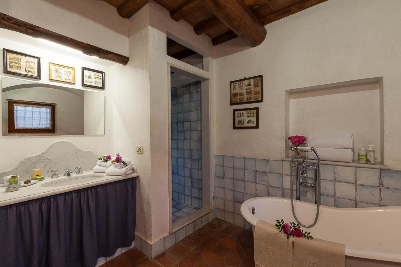 In ogni alloggio troverete anche un bagno privato con doccia, oltre adi cortesia, asciugacapelli e accappatoi.