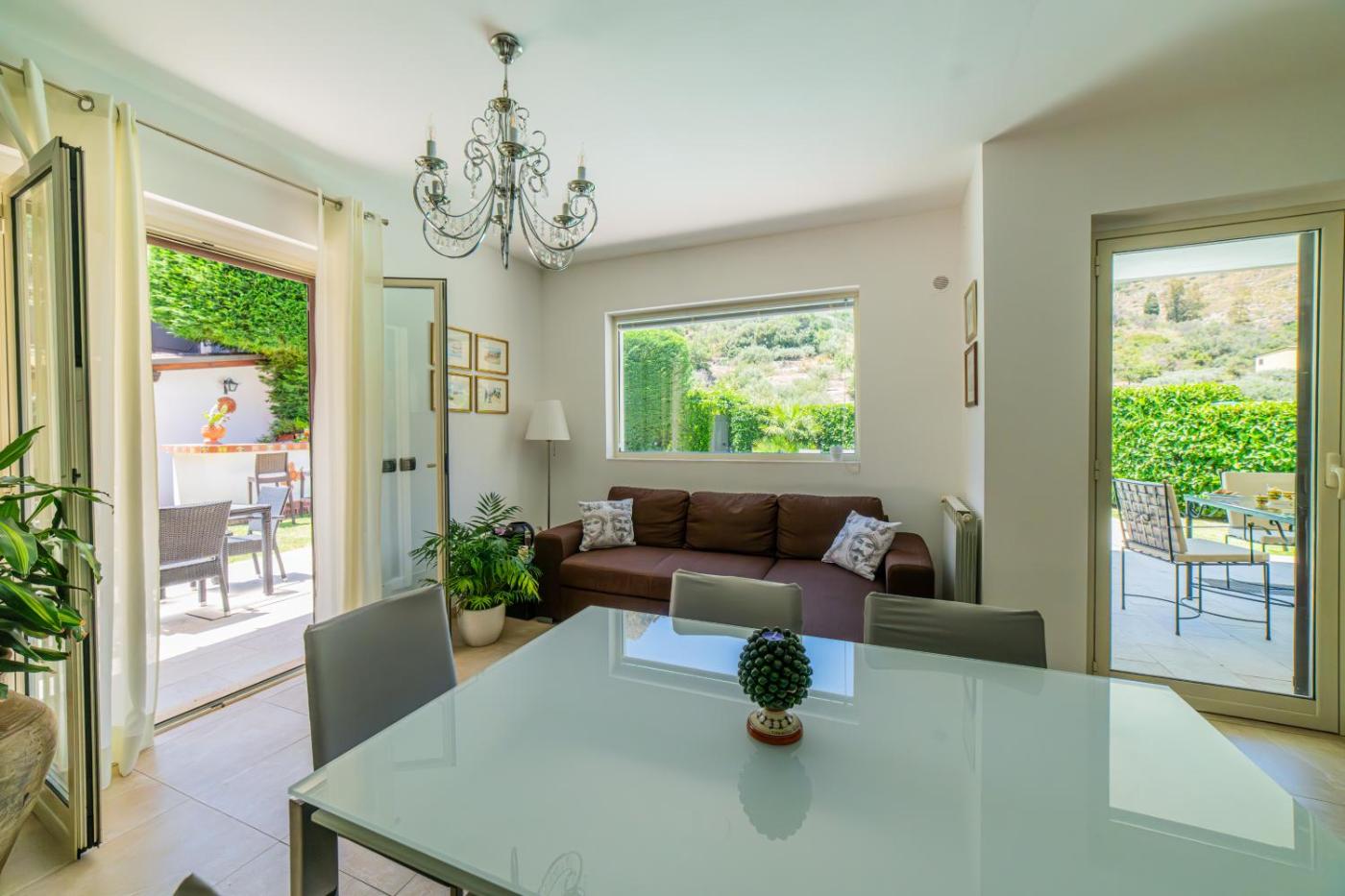 Villa con Piscina Privata. Villa dotata di piscina con vista e vasca idromassaggio. È dotata di ingresso privato, aria condizionata, cucina, 3 camere da letto e bagno con vasca e doccia. La cucina è ben attrezzata e provvista di piano cottura, frigorifero, utensili e forno. La villa include anche una terrazza con vista sul mare, una lavatrice e una TV satellitare a schermo piatto. Lalloggio presenta 3 letti.