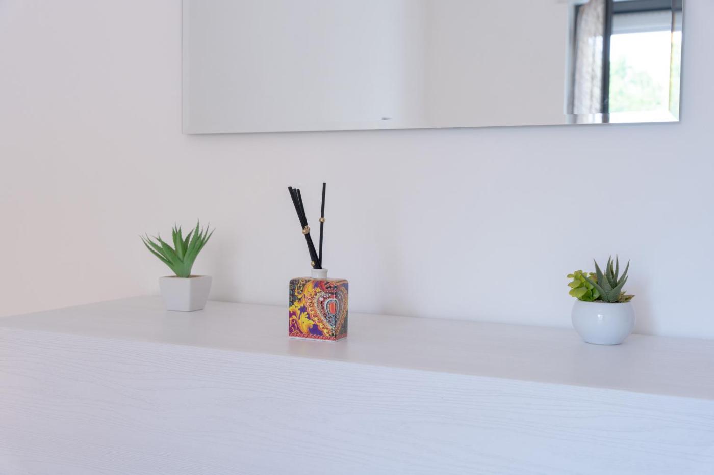 Questo appartamento con aria condizionata comprende 2 camere da letto, un soggiorno, una cucina con utensili, frigorifero e macchina da caffè, e 1 bagno con bidet e doccia. Presso questo appartamento troverete asciugamani e lenzuola in dotazione.