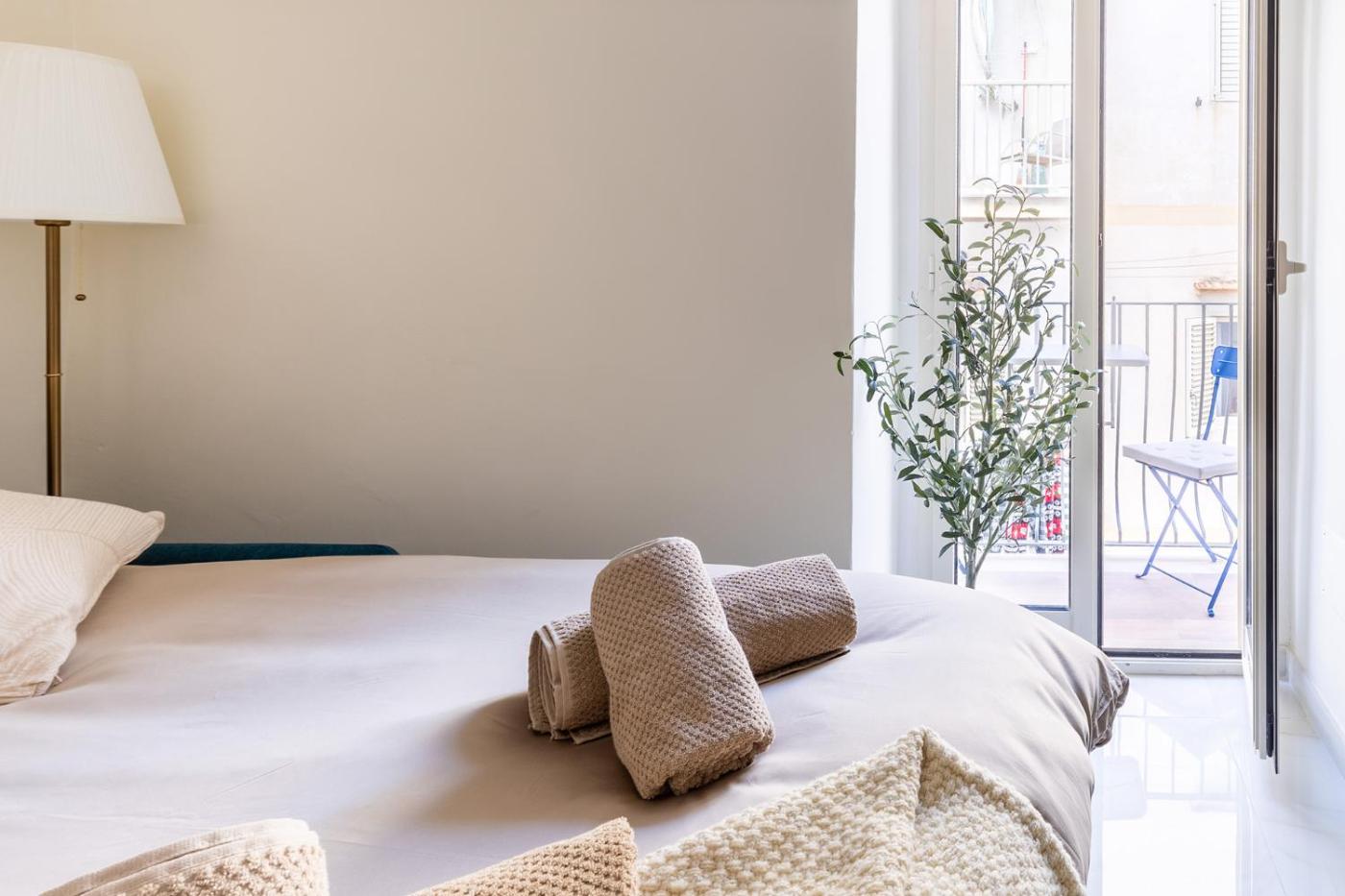 Questo appartamento ha 1 camera da letto, 1 bagno, lenzuola, asciugamani, una TV a schermo piatto, una zona pranzo, un angolo cottura con utensili e un balcone con vista sulla cittĂ .